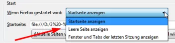 Unter "Einstellungen" habe ich eingestellt: Wenn Firefox gestartet wird: Startseite anzeigen.