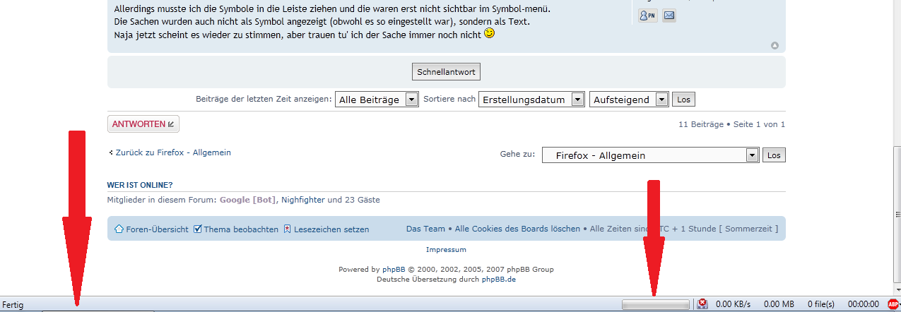 Oben in der Adressleiste habe ich jetzt wieder den Ladefortschritt, aber die Anzeige (vorschau/weiterleitung) für die Links ist immer noch nicht sichtbar.