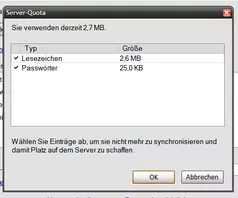 Merkwürdig ist aber, dass die Server-Quota nur Lesezeichen anzeigt und sonst nichts.