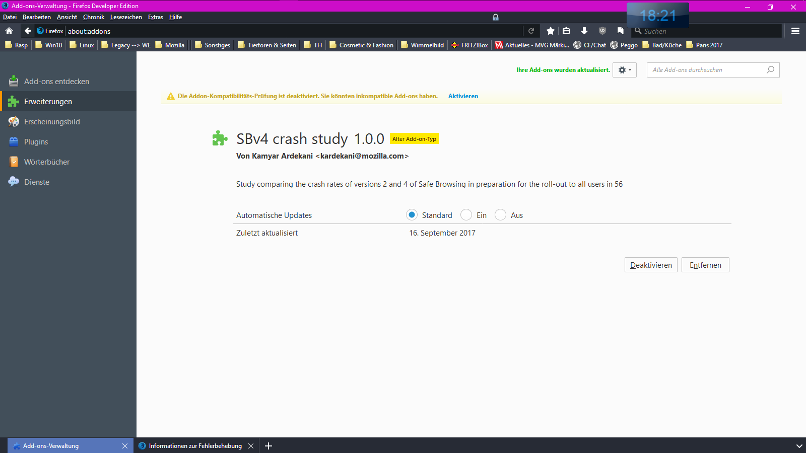 Es geht um die SafeBrowsing-API von Google, die Firefox nutzt. Bisher nutzt Firefox Version 2 der API und Mozilla hat lange an der Umstellung auf Version 4 der API gearbeitet und über die Erweiterung wird ein Teil der Nutzer Version 2 und ein Teil Version 4 bekommen und dann vergleicht man dann die Absturz-Statistiken miteinander, um schließlich die Entscheidung treffen zu können, ob Version 4 in Firefox 56 ausgeliefert werden kann.