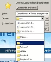 durch Doppelklick des Stern-Symbols in der Adressleiste kann man ein Lesezeichen in der Lesezeichen-Symbolleiste, dem Lesezeichen-Menü, den unsortierte Lesezeichen oder einem bestimmten Ordner ablegen (Standard ist "Unsortierte Lesezeichen"). Bei den Ordnern werden immer die letzten fünf genutzten angezeigt. Meine Frage nun, kann ich diesen Wert ("fünf") irgendwie erhöhen?