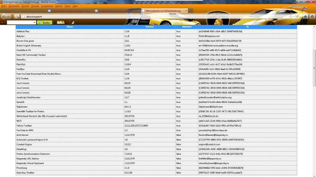 wen ich nun Firefox schließe und wieder öffne zeigt er mir wieder die Seite an die bevor ich sie geändert habe drin wahr diese ist http://www.searchqu.com/414 hatte mal die searchqu toolbar drauf habe sie aber gelöscht und seit dem zeigt er mir immer diese blöde Seite an werde mal meine Erweiterungen anhängen habe gesehen obwohl ich es deinstalliert habe steht die serchqu tollbar trotzdem immer noch drin wie bekomme ich die komplett raus