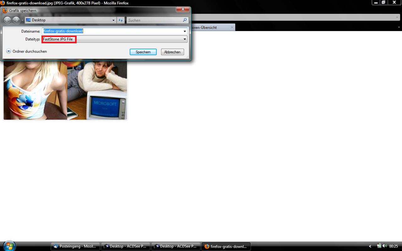 wie kann ich die standardanwendung "FastStone" herausnehmen? dieses programm war vorher auf meinem rechner installiert, habe es nun durch ACDSee ersetzt. jedoch zeigt mir ff6 immer noch "FastStone" an, wenn ich ein JPG aus dem netz downloaden möchte.