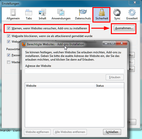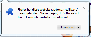Wie kann ich Firefox wieder so einstellen, dass ich einen Hinweis bekomme "Add-on Installation ist deaktiviert"?