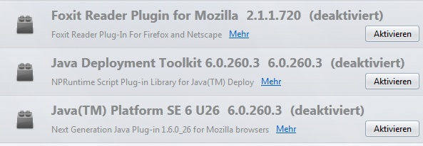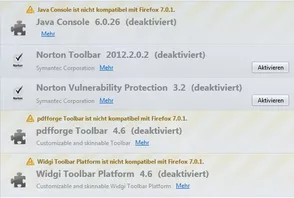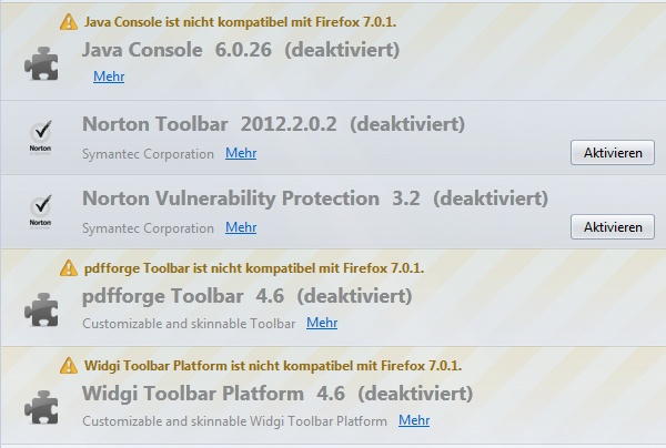 Wenn du Java überhaupt nicht benötigst, deinstalliere es via Systemsteuerung :arrow: Software. Gleiches gilt für die anderen Plugins. Die beiden NORTON-Erweiterungen müssten wohl im Hauptprogramm zu löschen sein. Genauere Hinweise dazu kann dir sicher ein versierter Nutzer dieser Sicherheits-Suite geben, ich benötige sie nicht.