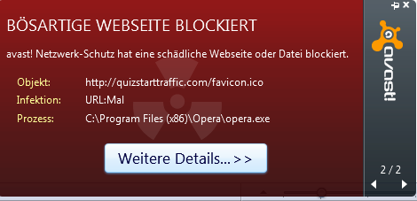 Seit gestern erhalte ich ca. alle 20 Minuten von Avast eine Warnmeldung, dass ein Malware URL-Aufruf verhindert wurde: