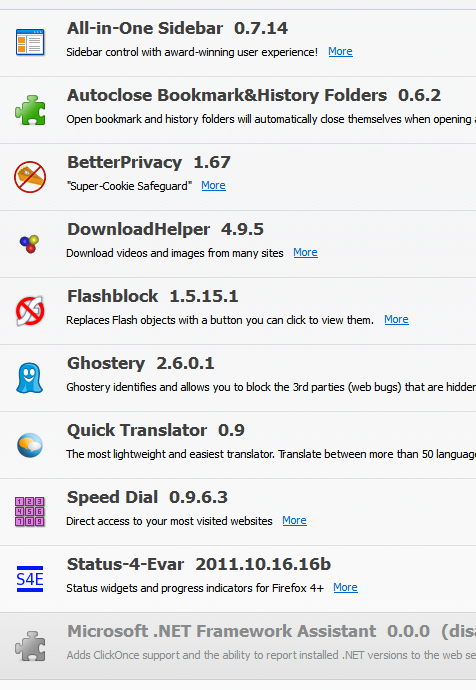 Das Teil ist an sich superb. Gelegentlich aber bekommen ich mit 7.0.1 damit eine "Doppelleiste". kanns grad nicht schiessen, weils weg ist. Ich wüßte nicht welchem Addon ich das sonst zuschreiben kann... Es ist eine art zweite Statusleiste über den normalen und das "obere" Ding ist auch komplett leer. Nur eben hört dann die Darstellung der Seiten bei dieser Leiste :twisted: Vielleicht leigt an den "alternative borders"? Keine Ahnung. Muß ich halt weiter beobachten. 3rd part Themen benutze ich npoch keine.