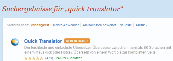 Dann machte ich mich auf die Suche bei AMO https://addons.mozilla.org/de/firefox/sea…uick+translator