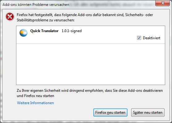 Ich habe nun https://addons.mozilla.org/de/firefox/add…or-for-firefox/ installiert, gefällt mir aber nicht so gut wie Quick Translator