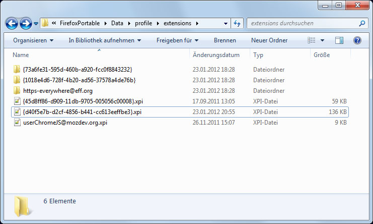 Ich habe diesen extention Ordner geleert und alle Addon's waren aus ff entfernt, bis auf "Gutscheinrausch.de".Also schließe ich daraus das keine der im screenshot gezeigten Dateien die gesuchte ist ... -