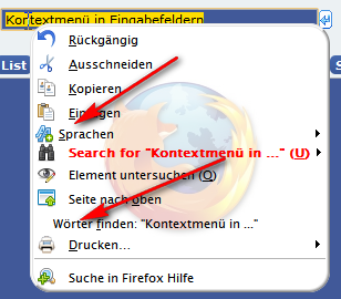 Kontextmenü in Eingabefeldern