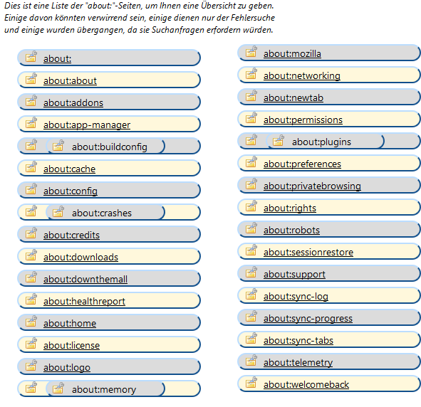 der 2. Screen ist eigentlich von about:about