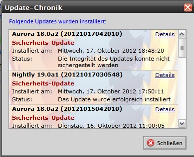 Update Chronik anzeigen funktioniert hier auch im Nightly.