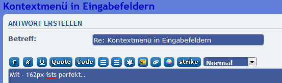Kontextmenü in Eingabefeldern