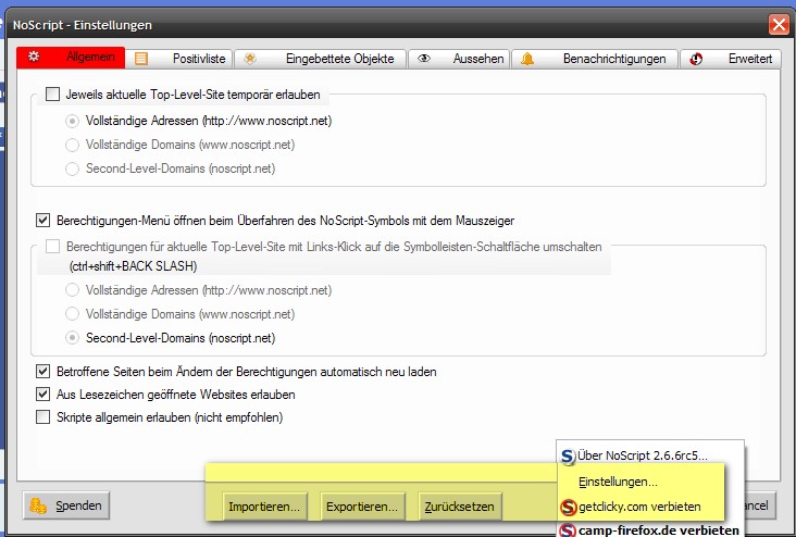 In anderen Codes gibt es was zu Einstellungen, aber nicht für NoScript...