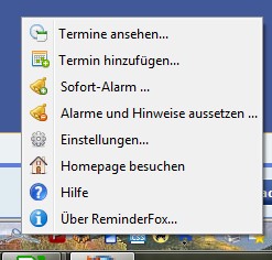 Rechtsklick auf das Symbol von ReminderFox.