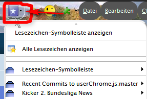Ich möchte das das "drop-down Lesezeichen" in der Symbolleiste anstelle in der Lesezeichen Symbolleiste angezeigt wird.