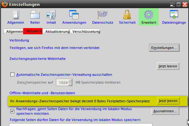 Browsercache Größe unveränderbar ?