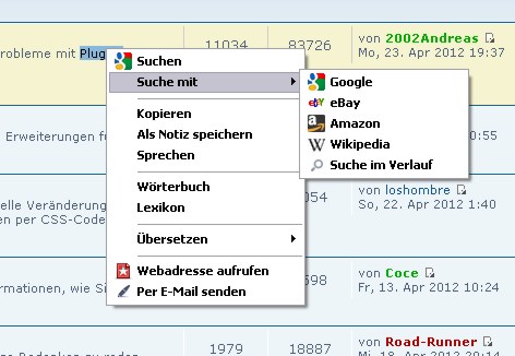Beachte: Die erwähnte Erweiterung Context Search ist hier installiert!
