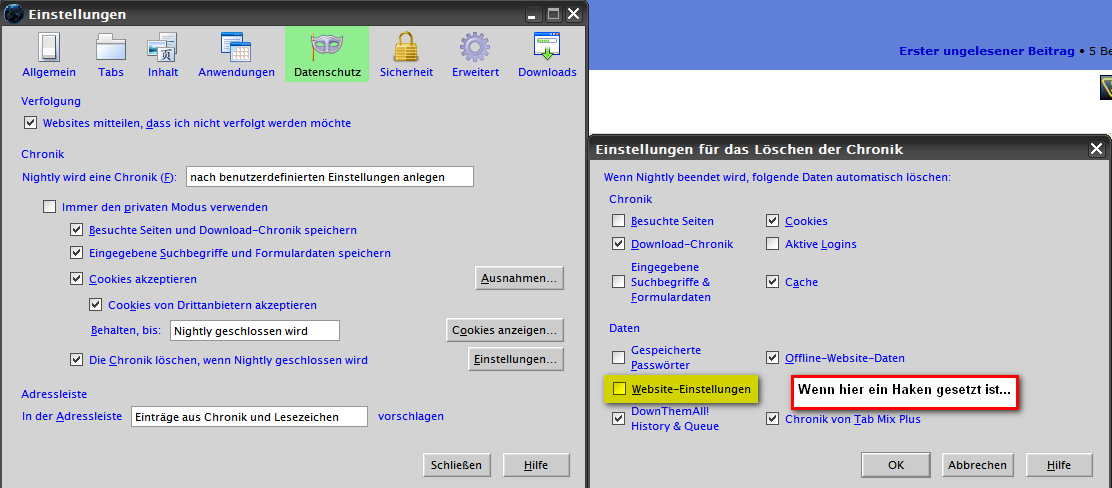 Ich benutz nicht den privaten Modus und die Seiteneinstellungen hab ich auch nicht gelöscht. Jedenfalls nicht wissentlich. Wie löscht man die überhaupt?