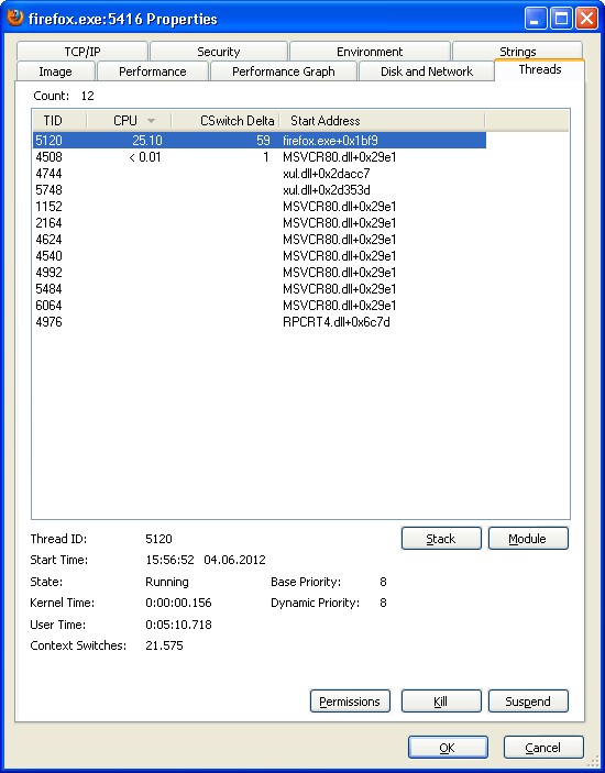 - Umbenennen der firefox.exe und starten zeigt die geänderte exe als Task. Firefox öffnet sich dennoch nicht