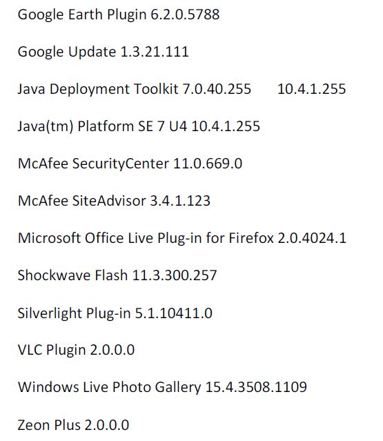 BTW: Wozu benötigt man diese ganzen Teile? Ich habe 3 installiert. 2 sind aktiv (Flashplayer und VLC-Player) und Java (standardmäßig deaktiviert)
