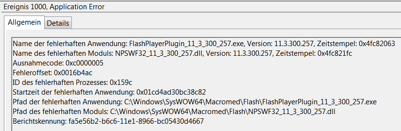 Ja allerdings, so ganz glücklich bin ich trotzdem nicht, da der FF mal kurz einfror und in der Windows-Ereignisanzeige (administrative Ereignisse) diese Meldung kam: