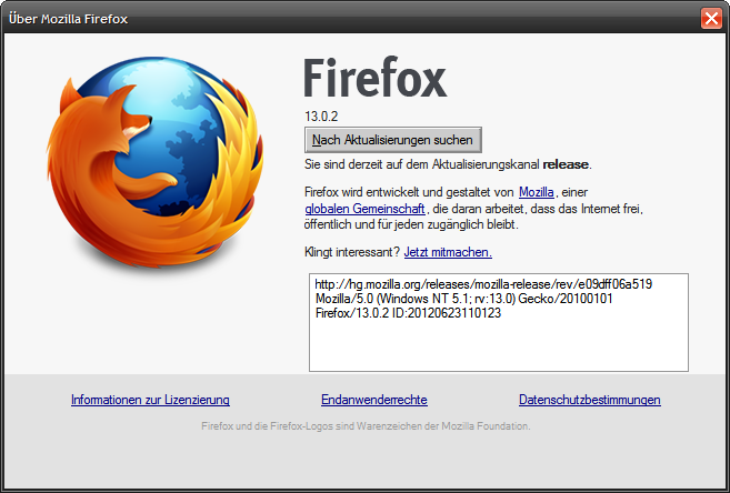 • Soeben kam hier Firefox 13.0.2 per automatischem UpDate an...
