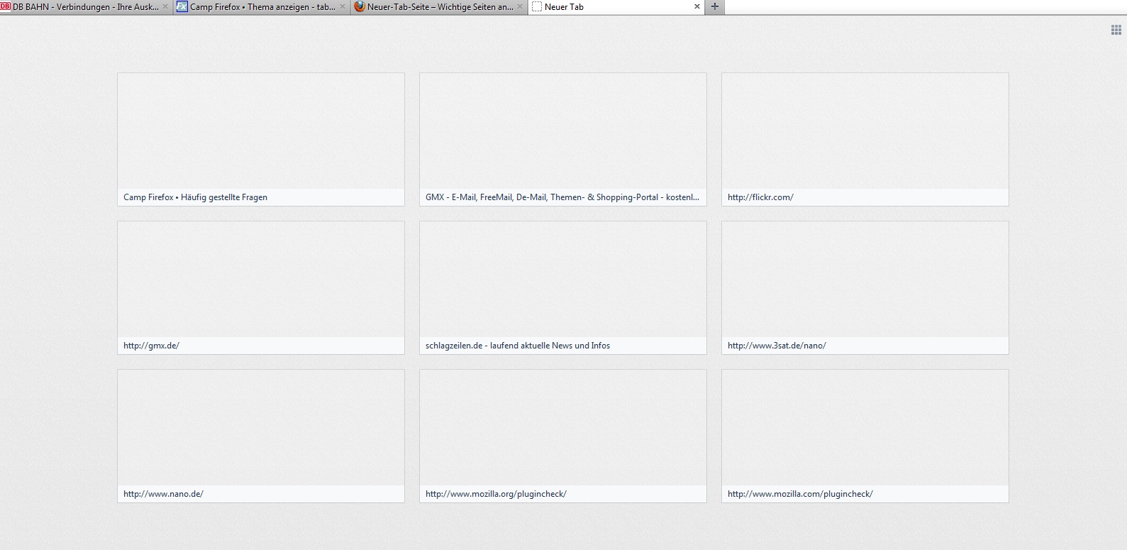 Seit Version 13 gibt es ja diese Vorschau der tabs bzw. Chronik-Rückschau mit neun tabs auf der Startseite. Leider sind die bei mir nicht bebildert, sondern es stehen "nur" die URLs oder Kurzinfos als Text da.