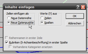 hier kennt sich bestimmt auch jemand mit Excel aus. Ich habe noch ein gaaanz altes Excel (2000) das ich selten brauche. Jetzt möchte ich ein Diagramm erstellen (bzw. das habe ich schon). Es soll angzeigt werden eine Line die den Trend über einen Zeitablauf anzeigt. Und das für 8 verschiedene.